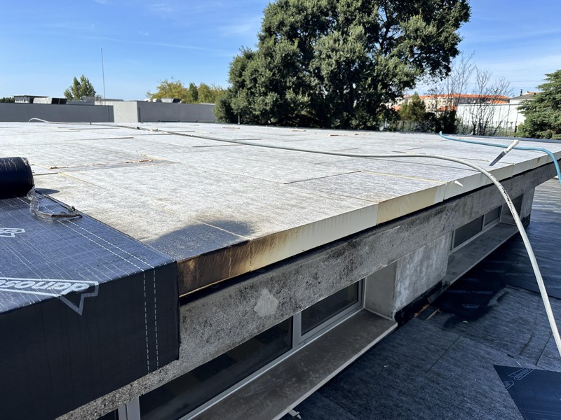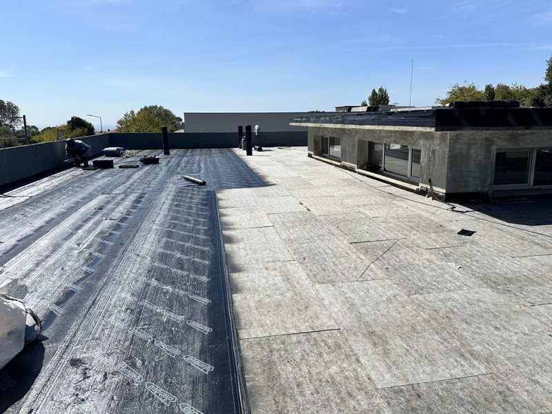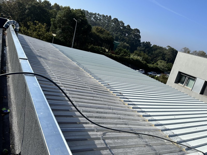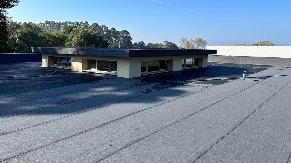 Obra em Canidelo, Vila Nova de Gaia. Reabilitação de cobertura (aplicação de Pirmate e telas), reabilitação das coberturas de áreas comuns.